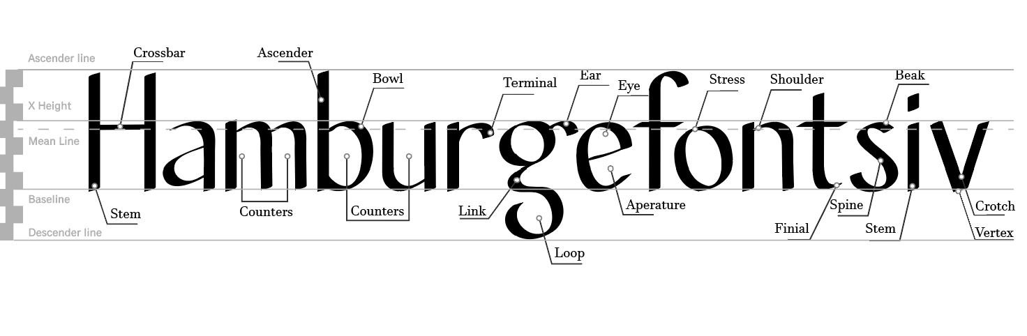 This is the fifth sheet used to practice creating the letters for the "Hamburgefontsiv" in Illustrator. This image includes the Illustrator guides that helped me align the letters and adjust the spacing.