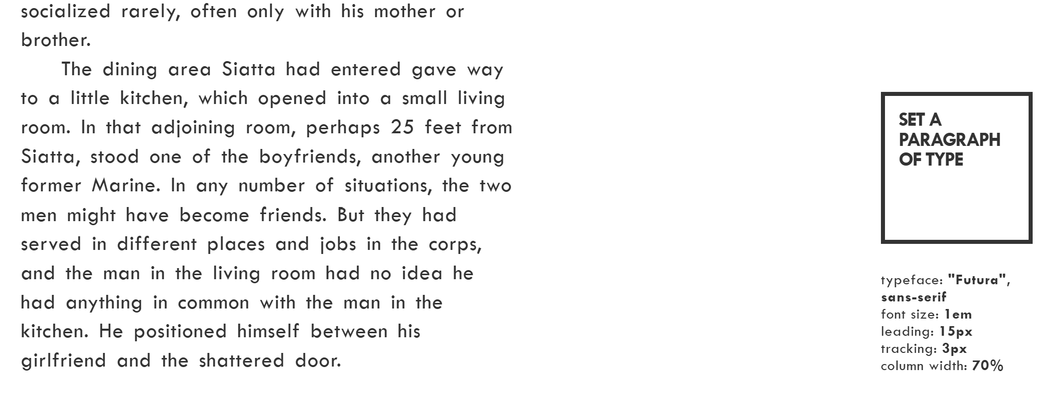 Initially, the colum width of the paragraph was 70% and the tracking was 3px.